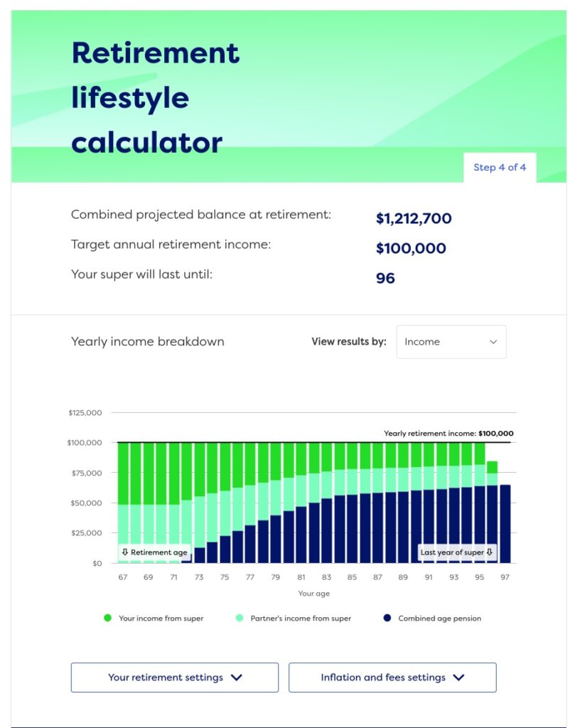 Equip Super’s retirement drawdown calculator: click image to see live version